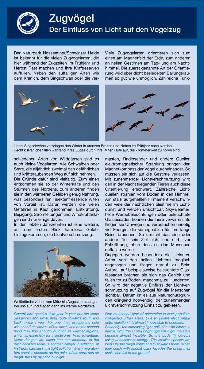 Nicht nur wir Menschen sind einem Tag-Nacht-Rhythmus unterworfen, sondern auch die Tiere und Pflanzen. Rund 30 Prozent aller Wirbeltiere und mehr als 60 Prozent aller Wirbellosen nutzen die Nacht als „Lebensraum“. Hier wird gejagt, sich fortgepflanzt und bestäubt. Zu viel künstliche Beleuchtung in der Stadt während der Nacht stört den Tag-Nacht-Rhythmus z.B. einheimischer Vogelarten empfindlich. Ihre Aktivitätszeit verlängert sich, was dauerhaft zu einer Belastung und schlechterem Gesundheitszustand führt. Nicht nur das, für Insekten wird die Straßenlaterne oft zu einer Todesfalle, für die geheimnisvollen Flieger der Nacht, den Fledermäusen, kann Licht zu einer undurchdringlichen Barriere werden und für Zugvögel birgt es die Gefahr einer Fehlorientierung auf ihrem Weg in den warmen Süden. Erfahren Sie hier weitere spannende Aspekte über die Lebensweise von Vögeln, Insekten und Fledermäusen und den Einfluss bzw. die Gefahr von künstlichem Licht auf diese nachtaktiven Tiere.