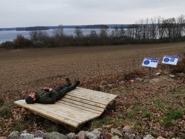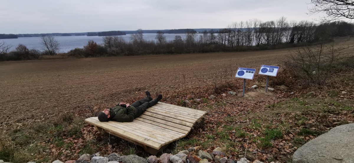 Auf dem Sternenbeobachtungsplatz am Krakower Obersee hat man bei Tage einen herrlichen Blick über das Naturschutzgebiet. Unter der Überdachung mit Sitzgelegenheit kann man seinen Blick über den See schweifen lassen und sich ausruhen oder mit einem Fernglas Wasservögel beobachten. Dieser Platz ist dem langjährigen Naturschutzgebietsbetreuer Dr. Neubauer gewidmet.