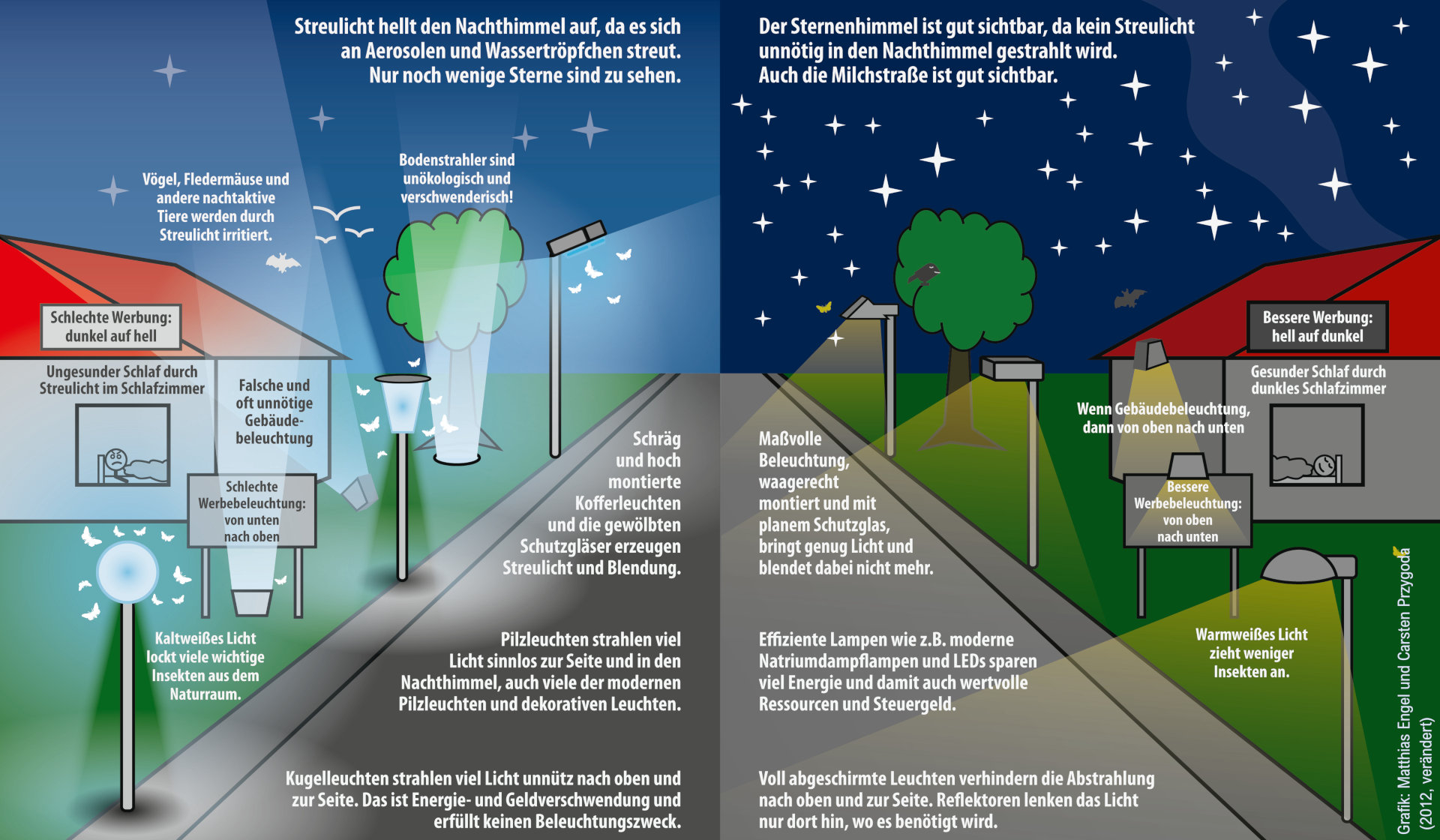 Vergleich konventioneller und Sternenpark-konformer Beleuchtung